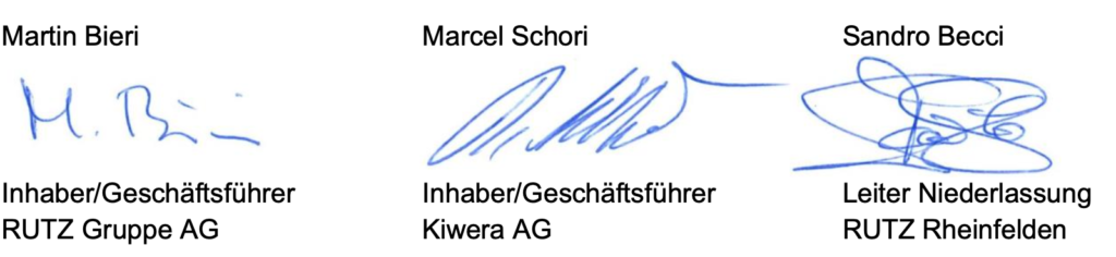Die Marke KIWERA und die damit verbundene Kompetenz und Qualität in den Bereichen Abgasanlagen und Kamine bleibt bestehen. Wir sind überzeugt, dass im Rahmen der strategischen Ausrichtung und der Nachfolgesicherstellung für die KIWERA AG der Zusammenschluss mit der RUTZ Gruppe AG der richtige Schritt ist, um Effizienz und Qualität im Markt weiterhin zu gewährleisten. Ergänzend ist geplant, die jüngeren Geschäftsbereiche der RUTZ Gruppe AG im Bereich von Solaranlagen und Lösungen für E-Mobility am Standort in Rheinfelden weiter auf- und auszubauen.